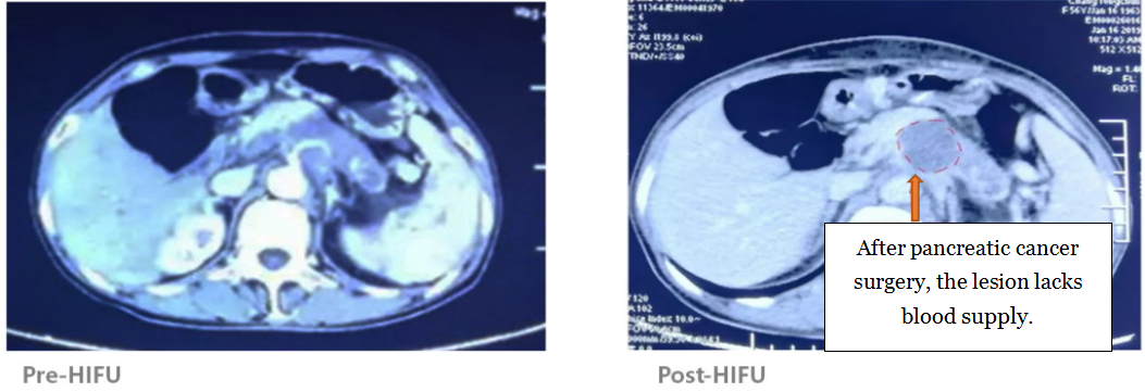 Pancreatic cancer has a high degree of malignancy and poor prognosis. In clinical practice, most patients are diagnosed at an advanced stage, with low surgical resection rates and no other special treatment options. The use of HIFU can effectively reduce the tumor burden, control pain, thereby prolonging patient survival and improving quality of life.